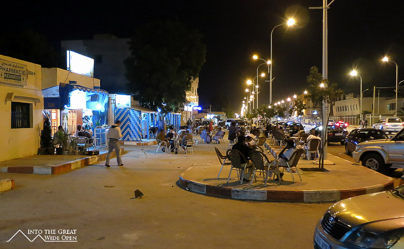 Back in the city in the evening the streets were busy but relaxed. I managed to find a nice sidewalk café for dinner that seemed popular with locals and served good looking plates of food. My first waiter spoke only Arabic so he had to call over another one who could speak French. I ordered a chicken tajine and waited, watching the city life. To my right there were boys playing pool outside. To my left a man was on his laptop reading a digital copy of some type of Islamic scripture while also checking his Facebook page. I guess this café had WiFi too. Of course the one thing conspicuously absent in all of this was any form of alcohol; it was strictly tea, coffee, water, or soda. But maybe that’s why it felt so pleasant.