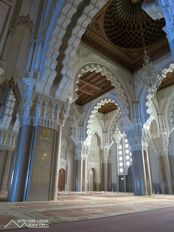 At a commanding spot on the coast the Hassan II Mosque was completed in 1993 and cost more than $500 million. That massive amount of money bought a spectacular building with intricate woodwork and artisan craftsmanship that took 6,000 workers six years to construct the world’s third largest mosque with a capacity for 25,000 worshippers inside the cavernous interior. The mosque’s minaret is over 200 meters tall and is the tallest building in Morocco.