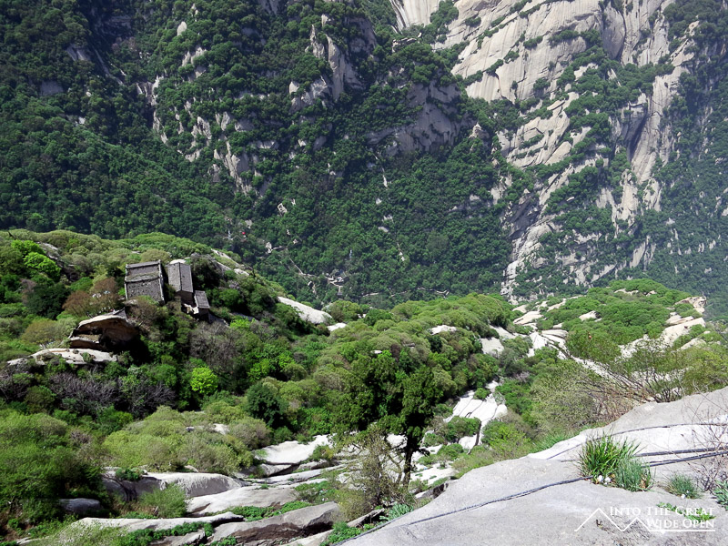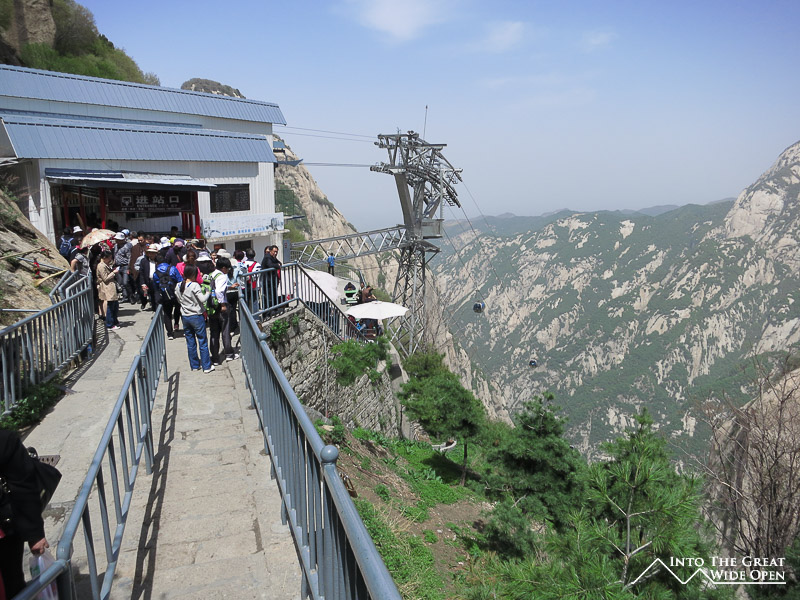 To escape the crowded streets of Xi’an I decided to take a day trip to Mt. Hua Shan, one of five sacred Buddhist mountains located about 100 kilometers away. The near vertical stone walls rise straight up from the ground and culminate in a series of peaks, each successively higher. There are a few options for getting to the top but I opted for the 6 kilometer hike up a decent grade paved path that before long turned into a steeper and steeper array of very narrow stairs carved into the stone of the mountain. The steepest sections were almost like ladders with chains on the side to help people make their way upward. Nonetheless it was a pretty walk up through the canyon until reaching the top of the North Peak. It is a popular route but even still I was surprised to see so many people clearly not prepared for something so rigorous, in fact I didn’t expect it to be so challenging. Luckily the weather was nice, otherwise the stone stairs would no doubt have been slippery and treacherous in inclement weather. As I was heading back to Xi’an in the afternoon I didn’t have time to ascend to the higher South Peak. Judging from the view of the trail – a winding length of stairs along the spine of the mountain – and the fact that I could barely see the bottom of the mountain from where I was through the smoggy air, I don’t think I missed too much. Being somewhat lazy and wanting a different view I opted to take the cable car down to the bottom and save my knees from having to go down the same set of stairs.