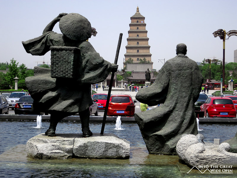 Xi’an is also famous for its Big Goose Pagoda, a large pagoda on the south side of the city that, if the air quality were any better than abysmal, would loom over the city and offer commanding views. Sadly, and this is the reality of modern China, the large tower is barely visible from 3 kilometers away. On the south side of the pagoda, at the main entrance there is a long boulevard with higher end shopping malls and restaurants and a new upscale Westin hotel. Around the pagoda is a Buddhist temple where workers were actively recreating some of the detailed paintings by hand.