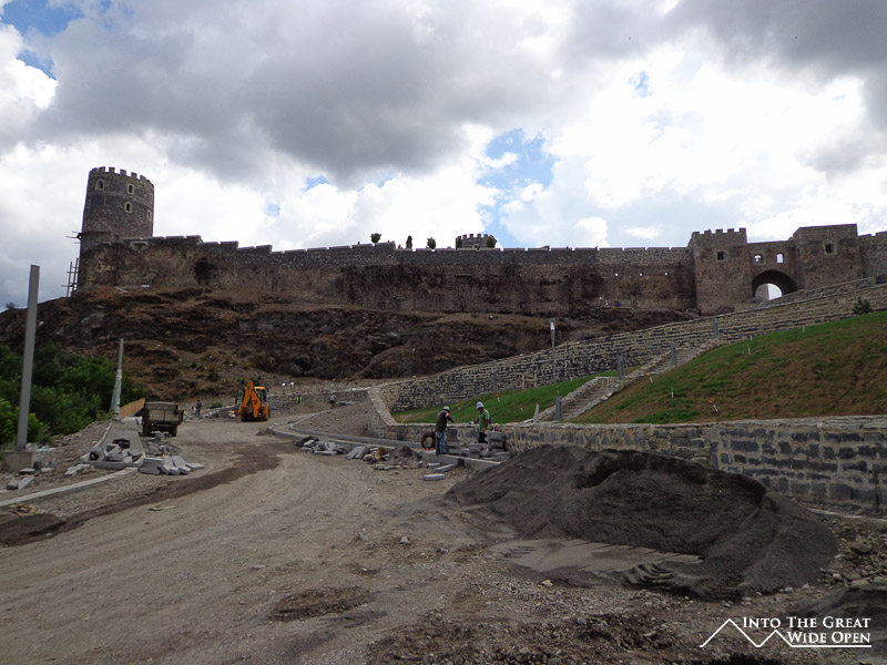 The end result meant backtracking about 14 hours to get to Akhaltsikhe, Georgia, due to the on-going dispute between Armenia and Turkey and their sealed border. Other than being near a border crossing Akhaltsikhe itself wasn’t the destination, but it turned out to have more substance than most border towns. To begin with it is dominated by an old castle set high on a mountain overlooking the rest of the city. This castle is somewhat unique in that it contains a gold-domed mosque. The town around it also contains a Georgian church, an Armenian church, and a Catholic church. At one time there was even a Jewish synagogue too. You could say it is a bit of a melting pot, or at least used to be. Today only a handful of Jewish families remain and the population is overwhelmingly Georgian. A melting pot would also be inaccurate in that there wasn’t a lot of mixing going on. The respective churches are located in opposite parts of the city and there are still three separate cemeteries, one each for the Jews, Georgians, and Armenians.