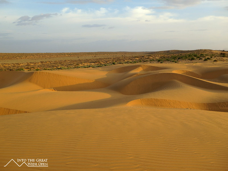 After arriving at an area with some sand dunes the camel drivers prepared dinner and we ate while the sun was going down. Sleeping outside under the stars on the sand dunes was rather uncomfortable with the wind constantly blowing slowly, dusting me with sand all night. Sleeping amidst all this sand left me stiff and tired in the morning, not in the least looking forward to another few hours on the camel, but, such is desert life, hot, sandy, and uncomfortable. Therefore it is not surprising that this ancient way of life is gradually vanishing. Tourism helps support some of the old lifestyle but more and more people, especially the men, are moving to the cities to work and sending money home to support their families. So at least in this case, tourism helps on both sides, propagating and age-old way of life and providing tourists with a different perspective.