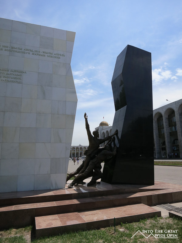 In Bishkek the only reminders of the isolated beauty are the snowcapped mountain peaks visible to the south of the city through the hazy air. Despite that, Bishkek is a rather pleasant place, the main street has several large parks with fountains and statues and with plenty of traffic lights the pace isn’t too chaotic. Alla Too square in the center has an enormous Kyrgyz flag flowing in the breeze with soldiers standing guard at attention during the day. The museum in the square has an archaic collection of old Soviet and Kyrgyz artifacts with no signs in English. The dimly lit museum has artwork painted on the ceilings and bronze statues depicting historic events throughout. Fire safety doesn’t seem to be a priority as the original pre-Cold War fire extinguishers still hang by the exits. Further along the main street is the Kyrgyz White House, at least it is humble and within the scope of what you would expect for a small developing nation.