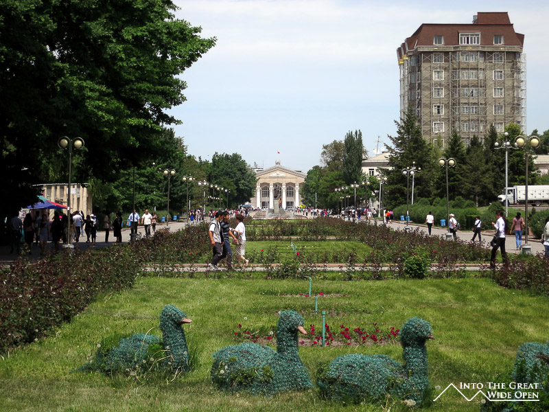 Besides strolling the streets there isn’t a lot to do in Bishkek but compared to Osh you can see and feel the difference in the population. On the streets of Osh it is very rare to hear Russian being spoken and the only Caucasian people are tourists, with few exceptions. In Bishkek, it is much more mixed; you will hear Russian just as often as Kyrgyz and will see a greater assortment of people. Most everywhere signs are in Russian or in both Russian and Kyrgyz. This gives an impression of the divisions that exist between the ethnic Russians, Kyrgyz, and Uzbek people that led to clashes in 2010. But for all my experiences so far, that seems to be in the past; or at least buried deep enough beneath the surface to be unnoticeable. And I hope it remains that way as this country is too beautiful to be ruined by civil conflict.
