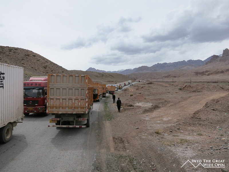 At this point it was the four of us plus the Scottish guy, since his driver and guide had picked up their passenger and departed back to Kashgar. We had our passport numbers recorded one more time, just to make sure you wouldn’t elope into this desolate wasteland and cause some sort of mischief. Past this checkpoint was 7 kilometers of a virtual no man’s land; in this zone you can’t go back to China and you aren’t officially in Kyrgyzstan yet. Due to some Chinese technicality you are not allowed to be unaccompanied here so each of us were put into whatever vehicles were also waiting to cross the border. We had to ride in these trucks until we reached the Kyrgyz checkpoint at the other end. Here, our passports were checked and numbers recorded, and the guard radioed ahead that there were tourists coming through to the actual immigration office. A few minutes later we reached the office, disembarked from the trucks, and got our passports promptly stamped.