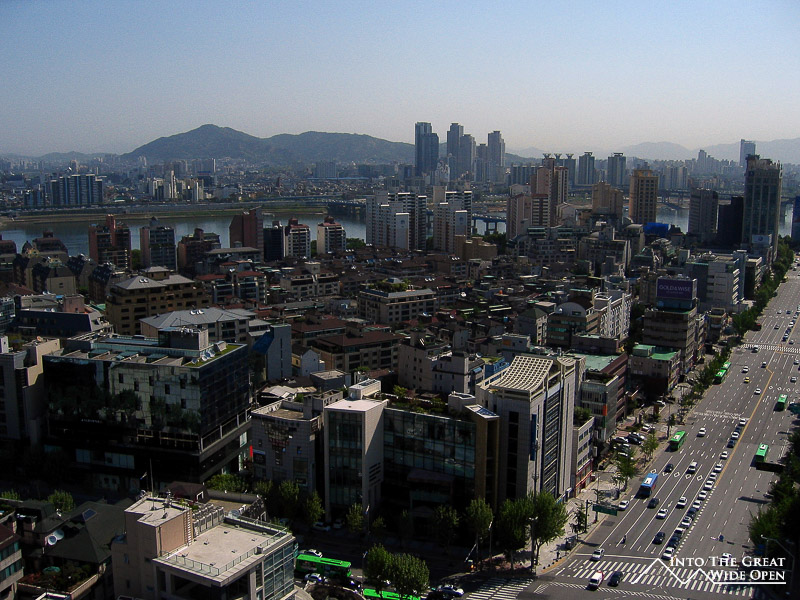 The first thing that struck me about Seoul on the long, long ride into the city from Incheon airport was the extent and density of the city. The way that I would most aptly describe Seoul is like a bigger and busier Los Angeles. There are a lot of similarities, the never ending traffic and expanse of the city, fancy cars and stylish people, but with the added benefits of a river and vast public transportation system. Luckily the hotel I was staying in was in the Beverly Hills of Seoul, several blocks from trendy restaurants and stores and luxury car dealers like Bentley, Ferrari, and Lamborghini, and to top it off it had the greatest hotel name ever, Human Starville (the panoramic views of the city from the 22nd floor were pretty nice too).