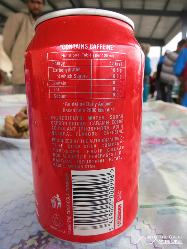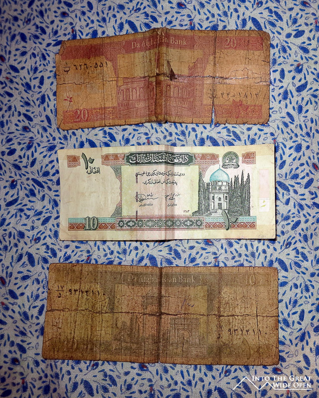 In this unique of a market I looked desperately for some type of souvenir that would be worth buying. Unfortunately with all the cheap Chinese items and shoes that were way too small I could find very little. I did manage to find a vendor selling Afghan Coca-Cola, probably long since expired but still unique in its own regard. I was also able to exchange some Tajik Somoni for some Afghan Afghanis, 4 Somoni netting me 40 Afghanis. Luckily I received one crisp new 10 Afghani bill as the 20 Afghani bills were so dirty and tattered that they were barely legible. Perhaps this was why the currency of choice at the market seemed to be Tajik Somoni and also US dollars for the larger items.