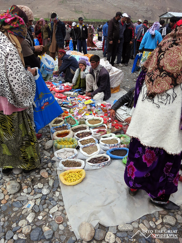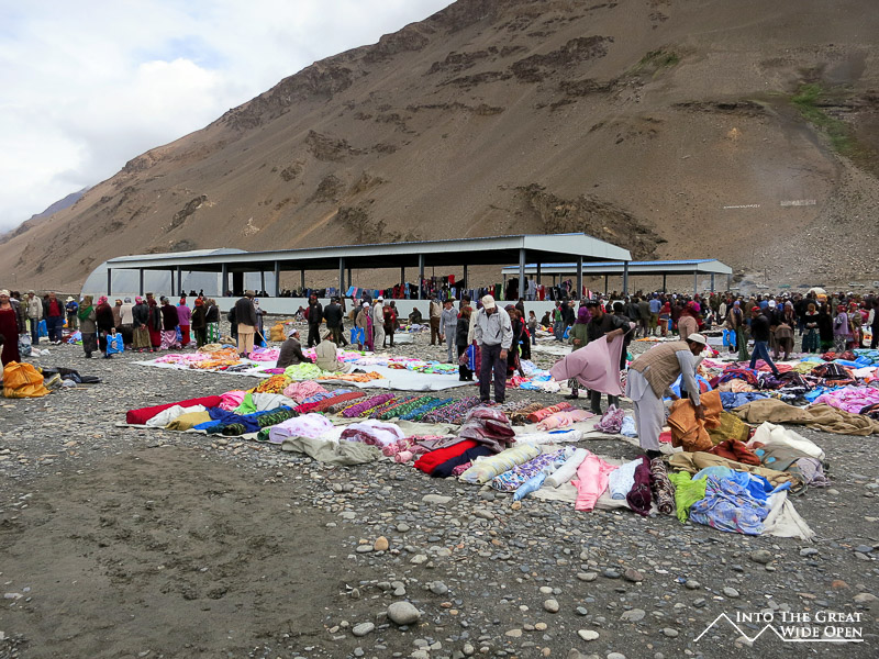 Besides the natural scenery and millennia of history, the Wakhan Valley is interesting today because of the juxtaposition of Tajikistan and Afghanistan. One, a nation with a war ravaged past and present, the other its neighbor, separated only by a river yet lacking many of these same problems. It’s hard to believe that the simple dividing presence of a river could make such a difference. All these differences seem to blur slightly every Saturday at the Afghan Bazaar in the border town of Ishkashim. Here the Afghan and Tajik borders open and traders and shoppers from both countries pour across the barbed wire fringed border gates to an island in the middle of the Pyanj River to a colorful weekly market.