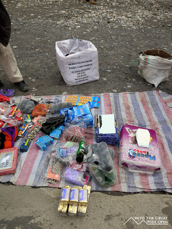 The random mix of items was not nearly as interesting as the people. There were Tajik soldiers and police, Afghan soldiers and police, Afghan merchants in robes and turbans, Tajik residents in colorful robes and shawls, well dressed Afghans and Tajiks in modern clothes, and everything in between. Walking around you could hear at least half a dozen different languages, regional dialects like Shugnani, Wakhi, Ishkashimi, along with Tajik, Dari, and Russian. While some looked unbelievably foreign in appearance, others, despite their dress and ragged clothes had facial features not too dissimilar from my own.