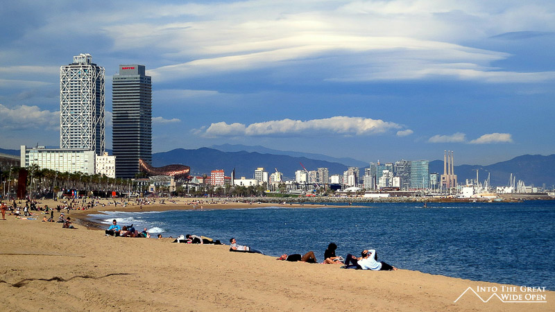On the beach in Barceloneta