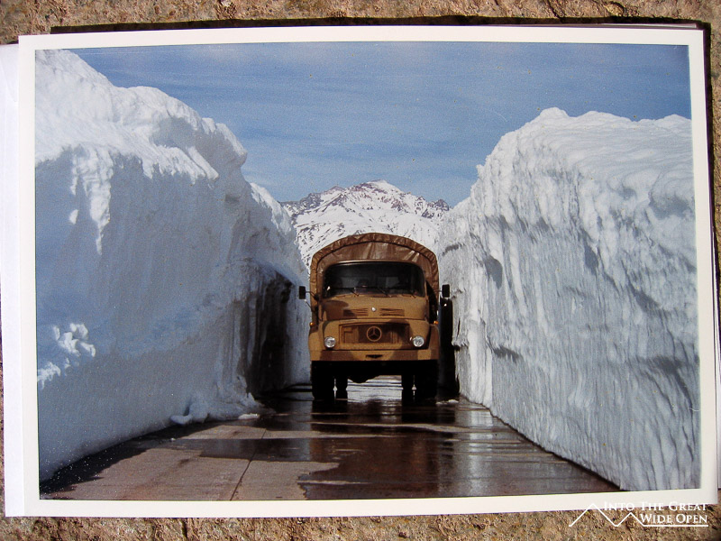 I had also wanted to see Aconcagua up close. Following a consultation with the park rangers, the intention was to camp inside Parque Nacional Aconcagua for one night and then hike into the valley to see the south face and the glaciers of the mountain, the thickest of which is about 300 meters thick. The rangers told us that even though we didn´t have a tent that there was some type of structure that we could stay in overnight, although it would be cold as temperatures would be close to freezing. It was a bit late in the season so there were no companies still renting out camping equipment in the town or the park. We stocked up on enough food and water, mostly salami and cheese, as the small food store in town didn´t have much else, and headed off toward the park on foot since no one would drive us there. All along the road there were 4 meter tall metal poles used to mark the sides of the road and to measure the height of the snow. I thought this was excessive but then I saw the photo of a truck driving between two towering walls of snow after a blizzard in 1997; it was impressive and I understood.