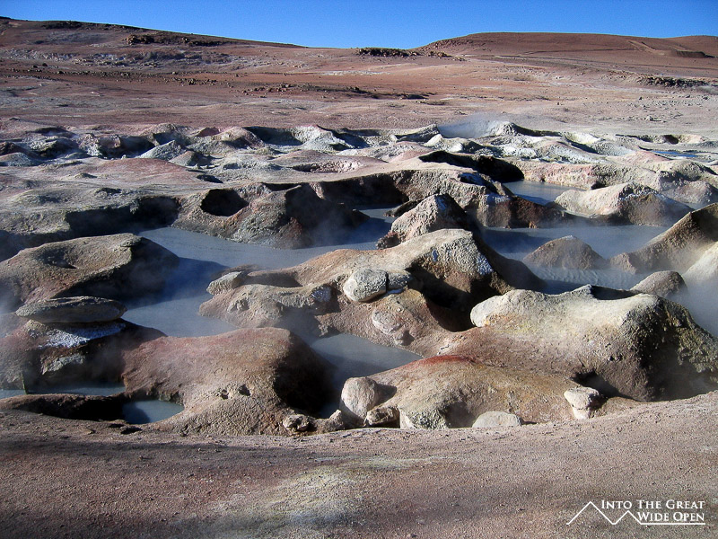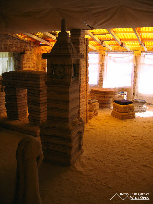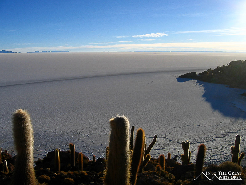 On the final morning we arose before sunrise and drove out into the Salar de Uyuni. As the sun slowly began to come up it illuminated the vast white expanse of the salt flats and showcased the strange roughly hexagonal patterns that had formed on the surface. After the sunrise we drove out to Isla de Pesca, a fish shaped rocky island in the middle of the salt flats that is covered with cactus and coral resulting from the area’s time underwater some 10,000 years ago. There is even a coral arch in the middle of the island with impressive views out to the white salt flats. The contrast of the cactus with the white of the salt was impressive. I took about fifteen to twenty minutes to walk out onto the salt flat and was amazed at the stark nothingness that existed out there, definitely an inhospitable land. As far as one could see the white expanse of the dried salt stretched out to the horizon with mountains and volcanoes looming in nearly every direction. We crossed the Salar de Uyuni and on the edge we stopped in a little village where they mine the salt. This part was also the first stop for tours heading out of Uyuni, meaning that there were about 25 Landcruisers a day in the low season and up to 50 per day in the high season, so this isn’t exactly off the beaten path anymore.