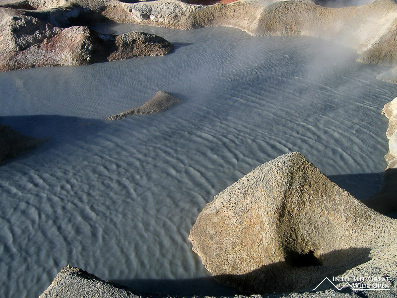 Inside the reserve our first stop was at the thermal baths overlooking a salt plain. The water was fairly warm but I only put my feet in because I didn't want to have to get out of the warm water and into the cold air. After lunch we continued south to the Dali Desert, a collection of Dali-esque rock formations perforating the desert sand and rising upward in strange shapes, some resembling buildings. Further on we reached Laguna Verde at the foot of Volcano Licancabur on the Chile-Bolivia border. The vivid green tint of the aptly named Laguna Verde was stunning and is the result of various minerals such as copper that are present in the water. When I was in San Pedro de Atacama, about an hour away across the border I had seen the same volcano and it looked much more impressive with its peak covered in snow, but from the Bolivian side the intense heat of the sun must melt all the snow that forms there. Unfortunately it was very windy and the surface of the lake was rippled with small waves so I was not able to get a clear shot of the water. From Laguna Verde we backtracked to the thermal baths and then continued in a different direction towards Laguna Colorado. The second night was spent at a slightly higher altitude about 5km from the shores of Laguna Colorado. It was bitterly cold yet again and since this was on the main route from Uyuni many other tour groups joined us in the basic hotel. After dinner we retreated to the warmth of the multitude of covers on our beds and went to sleep early.