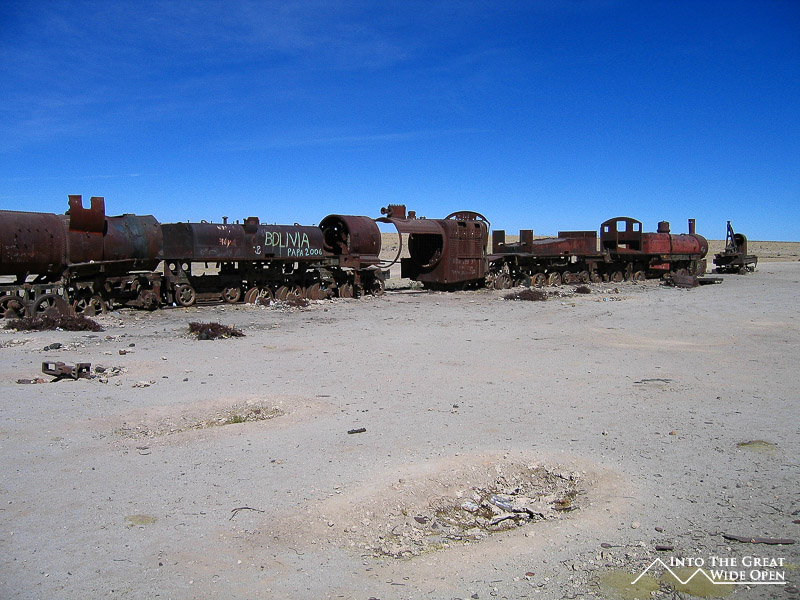 Uyuni itself was not far from the edges of the Salar de Uyuni. The town itself has absolutely nothing to offer except to serve as a staging post for the trips. The only interesting thing of merit is the train cemetery on the outskirts of town, which all the tour operators include in their circuits, consisting of the rusting wreckage of Bolivia's first trains the from the early 1900s, many of which are covered in graffiti. The surrounding area is littered with plastic bags and bottles and other garbage, caught up on all the bushes as if they were decorating for the holidays. It was a different and interesting, yet slightly disappointing ending to such a brilliant trip. The scenery that we saw from this region of the southwest of Bolivia was certainly exotic and the others concurred that it is perhaps the most unique and impressive scenery that any of us had seen, anywhere in the world.