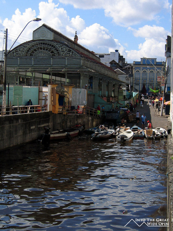 Around the city there are various old buildings, some in much better shape than others, that give a good impression of what the city may have been like in the past. The main market is an old marketplace modeled after the markets in Paris but has since fallen into disrepair and was currently being renovated. Outside of the city there is the meeting of the waters, the beginning of the Rio Amazonas marked by the confluence of the dark colored waters of the Rio Negro and the muddy brown waters of the Rio Solimoes, where the two rivers flow side by side without mingling for about a kilometer. In the dry season there are also some beaches on the river that can be visited but now in the wet season, these are mostly underwater, with the water level of the river having risen by 12 meters, submerging most of the riverbanks and the jungle habitats.