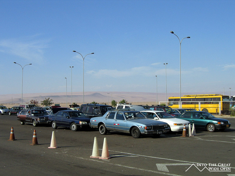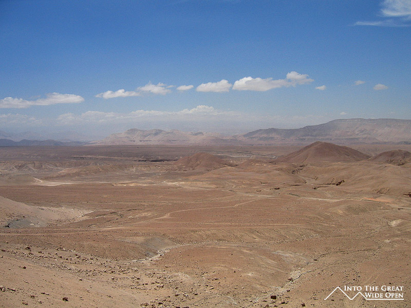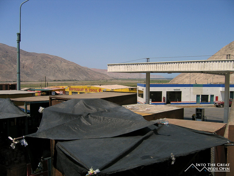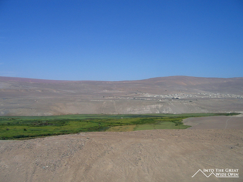 Not long after leaving Arequipa the road descends quickly and you are soon in the middle of a landscape similar to what Mars must look like. There are large mountains covered in sand with protruding red rocks and vast stretches of nothing. The road proceeds south without many signs of civilization until the town of Moquegua, a bit east off the main road towards Chile. Even there, the town is little more than a small patch of life. Continuing onward, a few oases break the vast expanses of sandy desert and actually look quite dramatic, like veins of green life in an otherwise dead landscape. There was a military base on the edge of a small oasis, probably a pretty miserable place to be stationed. After another hour of driving south the bus finally reached Tacna, the last outpost of Peruvian life on the way to Chile.