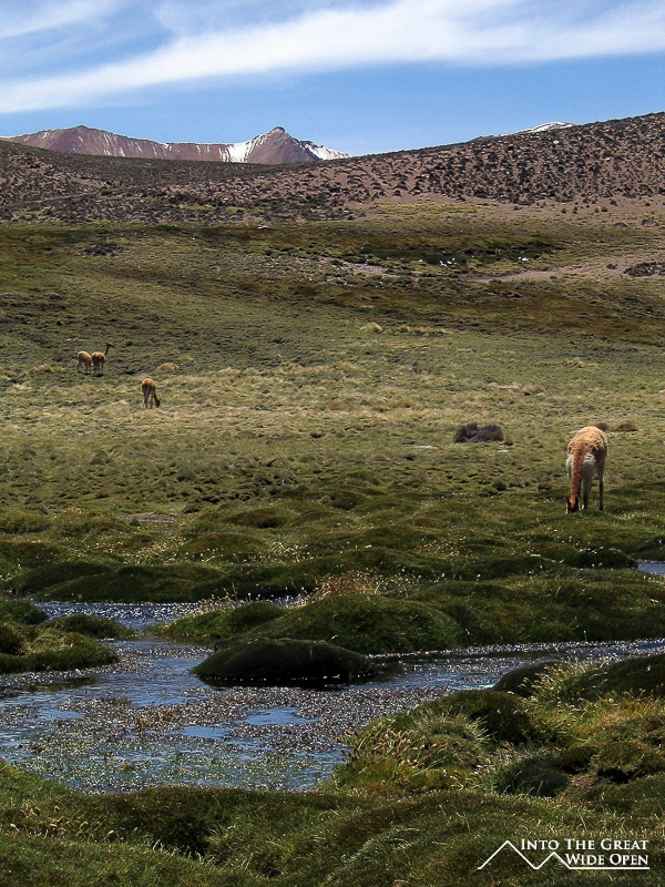 There is a nice old church that we visited with a dry and dusty cemetery in the back. Following that stop the road continues its journey upward and some vegetation finally becomes visible on the mountainsides as the temperatures drop. A few hours into the journey we reached the viewpoint over the town of Putre at 3,500 meters, the closest town of any size to the national park. Further past Putre we passed the checkpoint to the entry of the national park. The main road from Arica to La Paz actually runs through the park so if you take a bus on this route you´ll get to see much of the same beautiful scenery, but without the opportunity to stop and appreciate it. Before reaching what is supposedly the world´s highest lake there is a series of tiny little lakes interwoven with rocky mounds, I guess these are actually too small to be considered lakes because they are at an elevation of 4650 meters, the highest point reached on this journey.