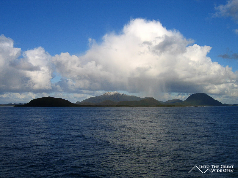 The next morning at breakfast there were a lot of haggard looking people who had had restless nights and there were a lot of barren food trays as no one felt much like eating. The poor weather continued with more rain, mist, and clouds. On the third day we passed an old Greek shipwreck from the 1960´s, now used as a bird sanctuary, and a salmon fishery on a remote island. In the afternoon we arrived at Puerto Eden, a small and remote fishing village, where we anchored in the harbor and some small boats off-loaded supplies and brought on eight new passengers. In season you are actually able to disembark here for a few hours but not in the off-season. After mooring for a few hours we were back on the open ocean for our last night at sea, which turned out to be quite smooth compared to the previous night. We played Bingo on the boat and there were a few prizes for the lucky winners.