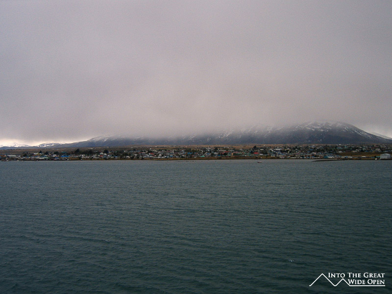 On the fourth day we were scheduled to arrive in Puerto Natales in the early afternoon. The days and nights in the cold and the lack of heat had finally added up to drive down the temperature in my room to a balmy 43 degrees Fahrenheit, cold enough to see my breath. The boat navigated through the narrowest point on the trip, a mere 80 meters and then shortly after lunch Puerto Natales came into view. The weather had actually reached a new low for the trip, with a temperature of 25 degrees Fahrenheit (-4 C), cross winds of 20-30 knots (25-35 mph), and sleet, combining to make it utterly unpleasant. As I was debating whether or not to rent gear and camp in Torres del Paine National Park for four nights, this made the decision pretty easy. Although I was later to find out that this weather system was part of a weeklong Antarctic cold front that had been passing through the area making things particularly miserable. Finally after nearly four days at sea we had arrived at Puerto Natales, gateway to Torres del Paine National Park where some outstanding scenery and excellent hiking awaited.