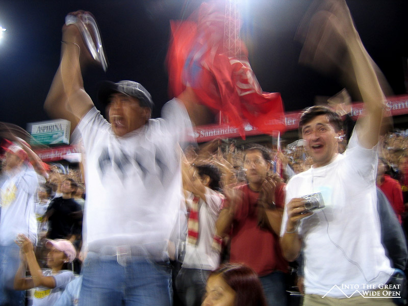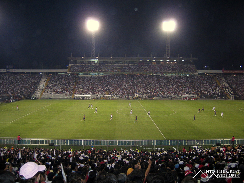 After this whole fiasco we had missed the first fifteen minutes of the game and the score was already 1-0 Colo Colo. There was another score later in the game and it never really got close with Colo Colo holding on for the win. In our section with the more expensive seats, things were rather tranquil, but in the cheaper seats at the ends of the stadium, enclosed by fences topped with barbed wire and staffed with riot police in the stairways at about 10 foot intervals, the fans were much more energetic, waving flags and jumping around in a sort of controlled chaos.