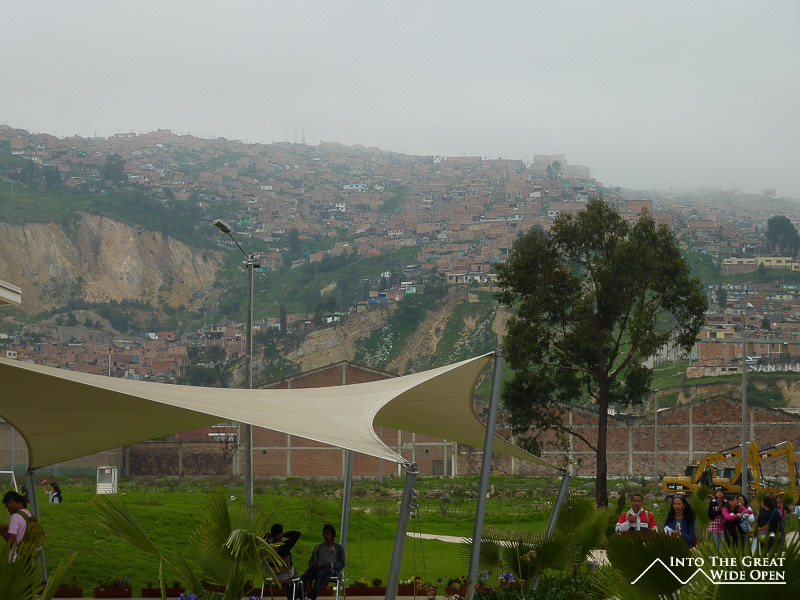 Compared to backpacking on a budget, visiting a place on a business trip allows for the chance to stay in nice hotels, eat at relatively expensive restaurants, and in general experience a higher and more luxurious level of local life. During this visit to Bogota I experienced a large range of those levels of society. My days were spent in Soacha on the outskirts of Bogota, a very poor neighborhood that had received government funding for the construction of a technical school for the local children. Behind the school dirt paths led up the hillside to an unofficial community where people lived in makeshift houses with few if any official services. On rainy days the kids would have a hard time reaching the school as the runoff from the rain turned the dirt paths into rivers and waterfalls of mud.