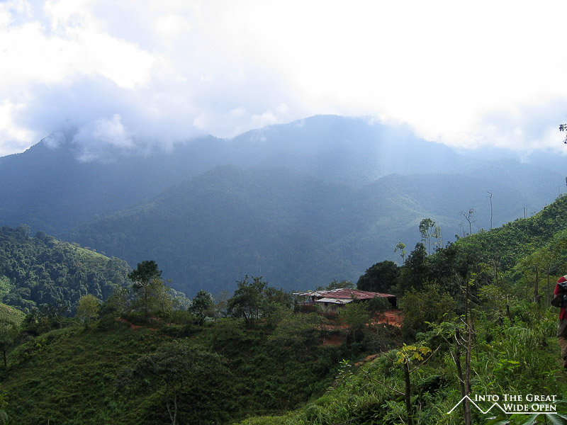 Over lunch in the village the people in the other vehicle said that they were scared watching us drive because the jeep would shift from side to side at such large angles. After lunch we started hiking into the wilderness. The trail was nice, we were all talking and getting to know each other, and we were able to cross a few shallow rivers without getting wet. Our food supplies had been loaded up on mules and had traveled ahead of us.