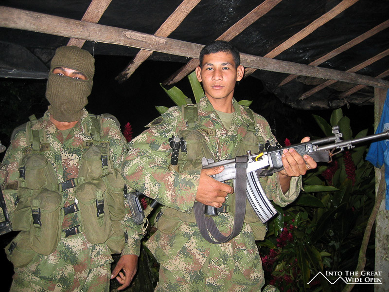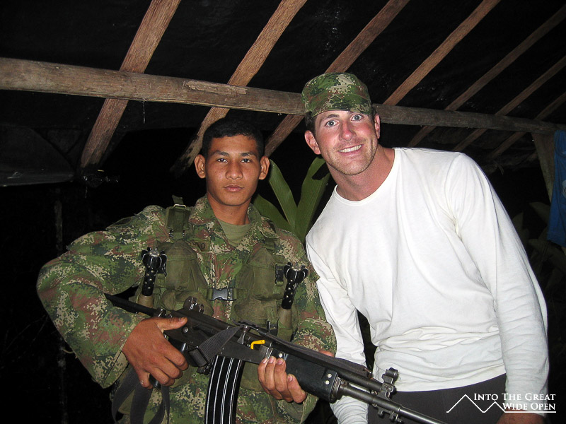 When we woke up in the morning the soldiers had gone and this meant that we were able to take a side trip with a man that used to run cocaine factories in the jungle. He told us that the army had blown up two of his factories so he no longer did that. That would be the same army that stayed with us in the camp the previous night. They had moved on looking for and trying to destroy coca plants, as this whole region is prime coca country and there used to be heavy guerilla activity as recently as five years ago when several people were kidnapped at the Lost City. A heavy military presence has since moved the threat of any hostile activity much deeper into the jungle.