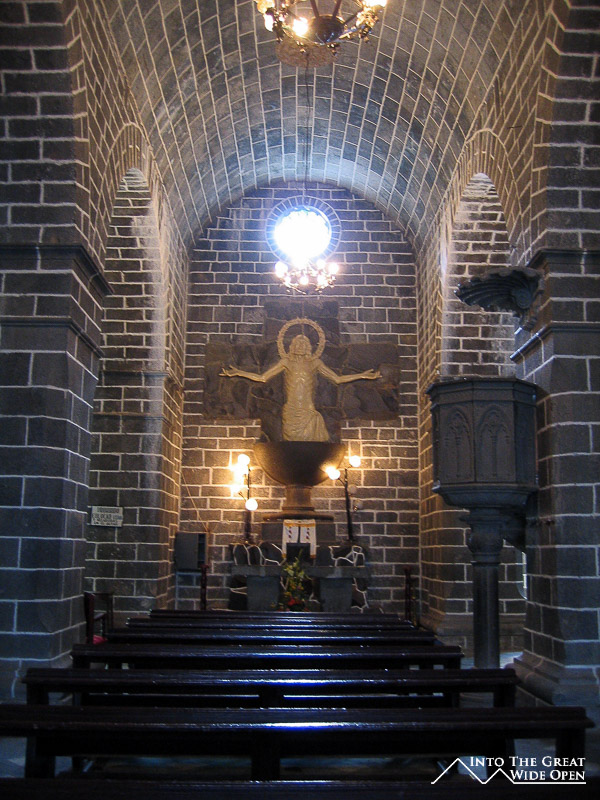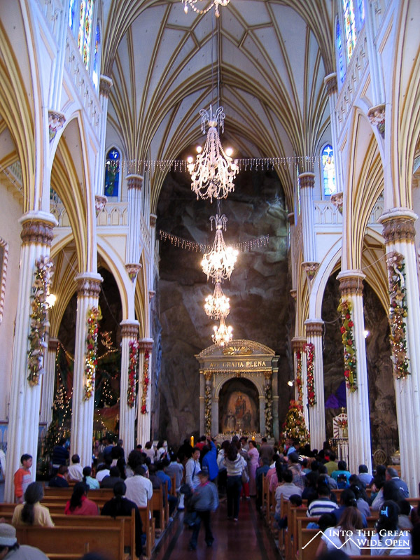 Ipiales is definitely a mountain town. At about 9,100 feet of elevation it gets cold in the evening but the sun is quite strong during the day. In the morning I went to see the Sanctuary of Las Lajas, a large stone church built across a river gorge in the mountains just outside of town. After bargaining with the cab driver I was on the way, it was only 7 km so a pretty short ride and the cab driver stopped at the viewpoint overlooking the valley for a nice view of the church, which looked much smaller nestled between the giant mountains. The little village next to the church was really touristy, but being early in the morning on a weekday it was empty and some of the little stores were closed. This was a good thing since there was already enough repetition between the stores that were open.
