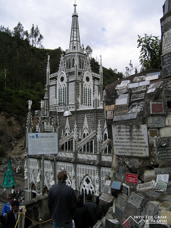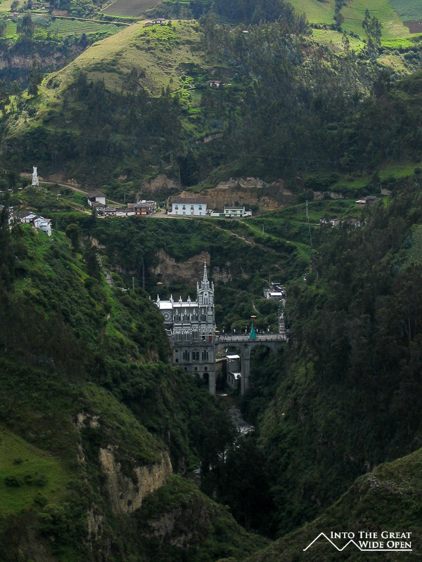 A few places were selling cuy or guinea pig but unfortunately I had just eaten and they were expensive, costing about $12, so I decided to save that culinary treat for Ecuador. The church itself was quite nice, it had heavy gothic decoration and there were trails leading to the river below and up to the surrounding mountains. Walking up and down was tiring due to the altitude but the views of the church were worth it. After walking around the church area for a while I went back to Ipiales to pack up and get ready to cross the border.