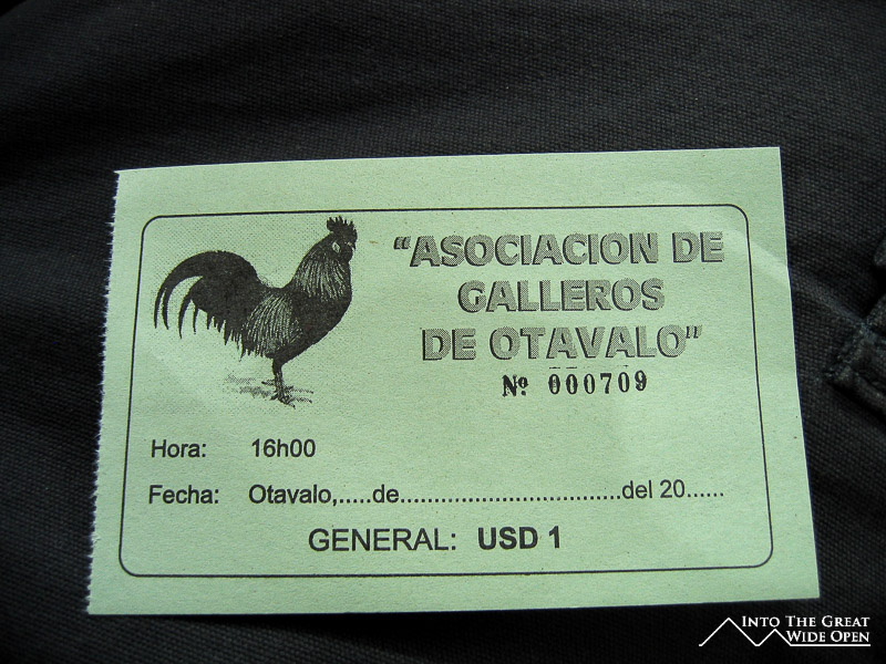 But perhaps such is one´s trip to see a cock fight, especially the one in Otavalo. After confirming the location of the pit with two locals, I was given conflicting starting times and was forced to check at each time because so as to secure a good seat. I waited as the market wound down and the mass exodus from town had commenced with all the sellers packing up their wares and leaving.