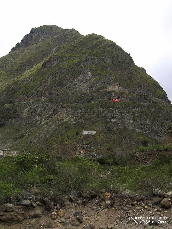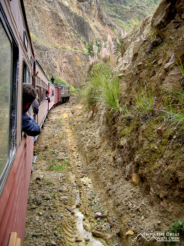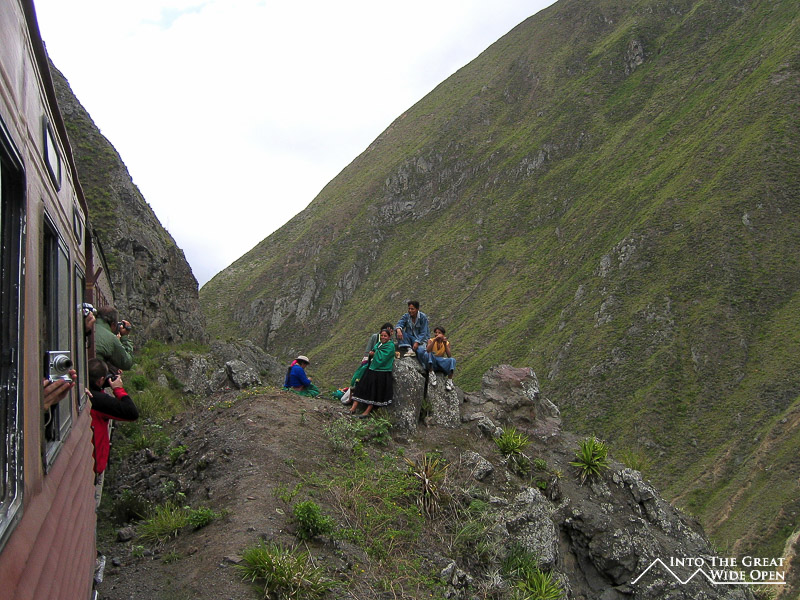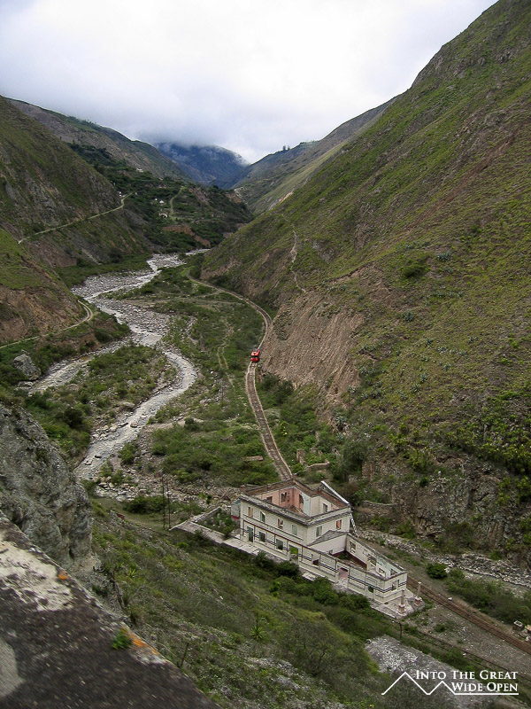 Nonetheless, it made for much easier time boarding the train as everyone has an assigned seat and it was all quite orderly. The train ride itself was nothing special. It was slow, at one point a dog was outgaining us until it came to a ditch, bumpy, and the scenery was nice but not as spectacular as I was hoping for. For me, the interesting part was seeing all the abandoned buildings along the way that have no reason for existing now that the train doesn´t stop there anymore and there is almost no road access at all. The Devil´s Nose was interesting for the scenery, but as for the engineering accomplishment in building the tracks, I wasn´t that impressed. The train travels on what they call a V switchback, which simply means that it runs downhill to where the next track line intersects it and then it switches tracks and continues downhill in reverse.