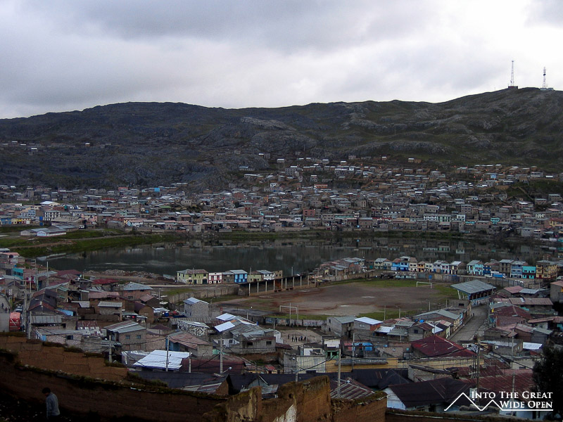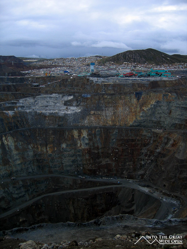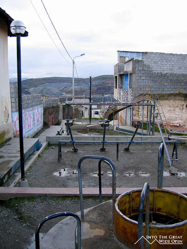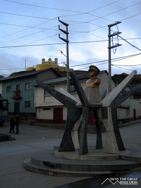 South of Huanuco the paved road reappeared and led towards Huancayo, a large city 7 hours away. Since I arrived in the early afternoon I could only make it as far as Cerro de Pasco, about 3 hours south. What to say about Cerro de Pasco? On the cover it looks like a very grim place with lots of deteriorating buildings constructed of grey cinder blocks ringing a large mining pit at an elevation of 14,300 feet. The fence with concertina wire around the entire mine pit and the abundance of faded and shoddy statues makes it feel like communist bloc USSR during or after the cold war. Despite the cold and grayness, the city was teeming with life on the streets and it seemed very friendly, although some people looked at me as if they had never seen a tourist before.