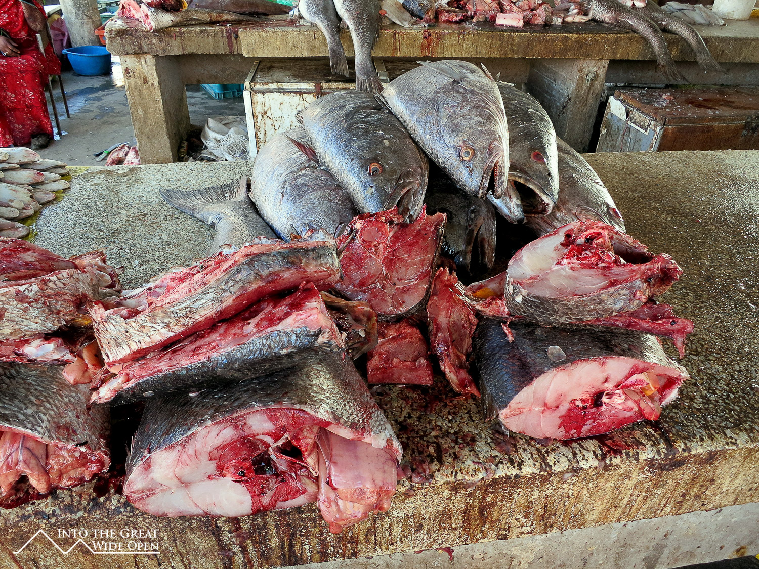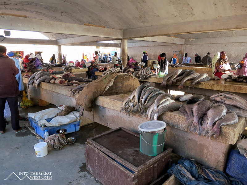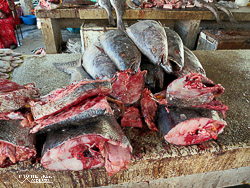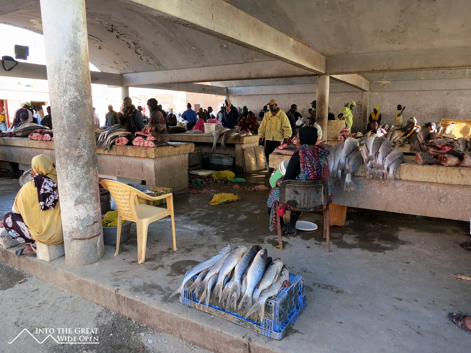 In the fish market the catch is processed. Men quickly scale, chop, and gut fish as it comes in. Your shoes crunch the hardened fish scales covering the concrete floor as fish guts are discarded to the side, left for the birds and cats to scavenge. It was certainly a different atmosphere from any Western fish market I have been to and a nice colorful representation of life in Mauritania.