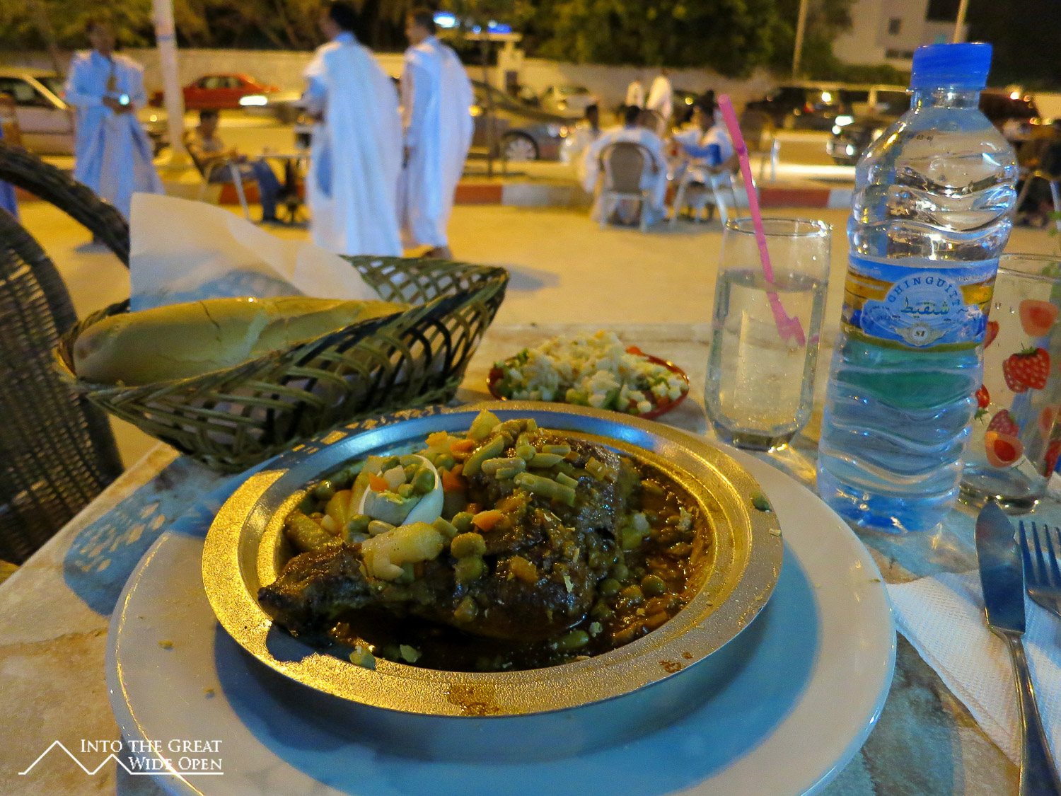 Back in the city in the evening the streets were busy but relaxed. I managed to find a nice sidewalk café for dinner that seemed popular with locals and served good looking plates of food. My first waiter spoke only Arabic so he had to call over another one who could speak French. I ordered a chicken tajine and waited, watching the city life. To my right there were boys playing pool outside. To my left a man was on his laptop reading a digital copy of some type of Islamic scripture while also checking his Facebook page. I guess this café had WiFi too. Of course the one thing conspicuously absent in all of this was any form of alcohol; it was strictly tea, coffee, water, or soda. But maybe that’s why it felt so pleasant.