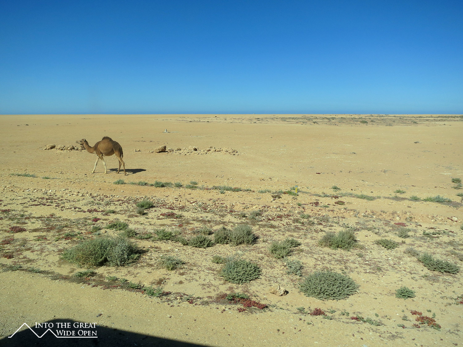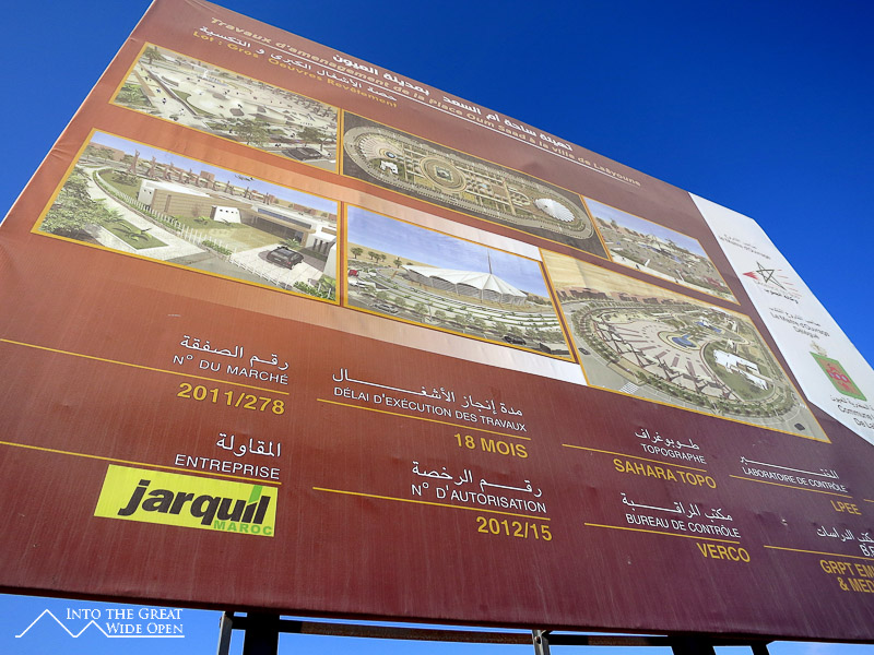 The enormous Place du Mechouar was deserted in the middle of the day, making the few visitors seem tiny in its spaciousness. Despite its emptiness there was ongoing large scale construction of Place Oum Saad just to the south. North of the Grand Mosque, an old restored Spanish Cathedral seemed oddly out of place in this very conservative Muslim city. The only real point of interest was the vast lagoon that opens up on the north edge of the city. There the city comes to an abrupt end, penned in by the water and the desert. A strangely situated and picturesque soccer field occupies land in the center of a sandy plateau in the mist of the lagoon, while on the other side sand dunes stretch to the horizon.