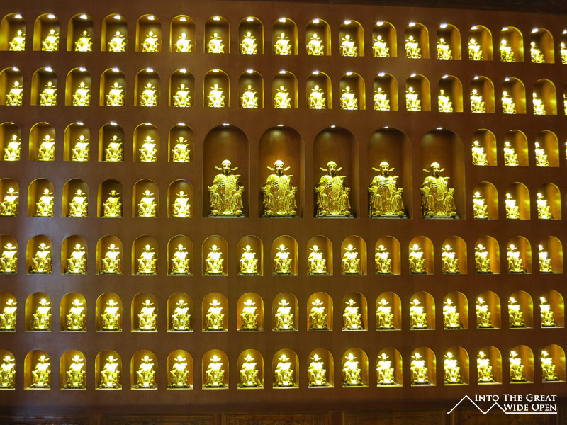Xi’an is also famous for its Big Goose Pagoda, a large pagoda on the south side of the city that, if the air quality were any better than abysmal, would loom over the city and offer commanding views. Sadly, and this is the reality of modern China, the large tower is barely visible from 3 kilometers away. On the south side of the pagoda, at the main entrance there is a long boulevard with higher end shopping malls and restaurants and a new upscale Westin hotel. Around the pagoda is a Buddhist temple where workers were actively recreating some of the detailed paintings by hand.