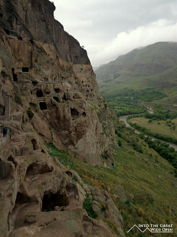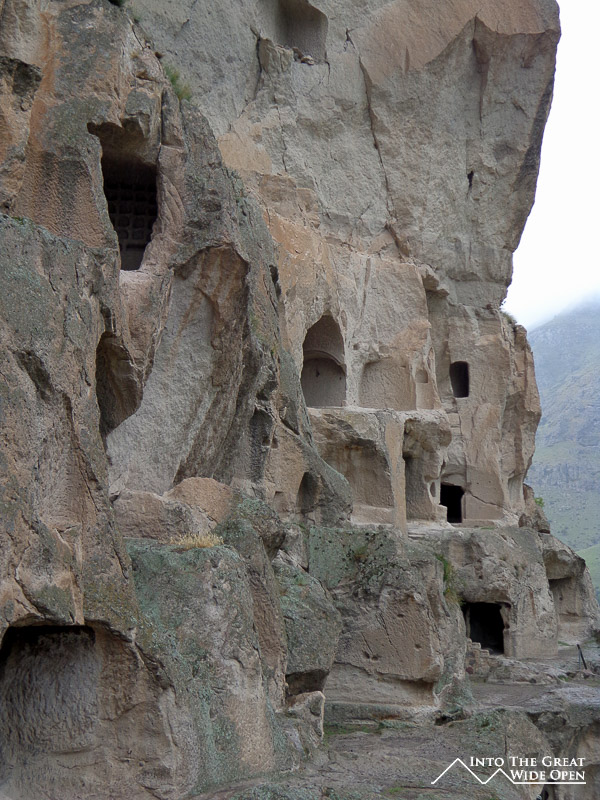 Two hours away in relative seclusion there is the cave city of Vardzia. This intricate complex of over one hundred caves is carved into the stone mountainside in the southwestern wilderness of Georgia. The caves span multiple levels on the mountainside and in the heart of the complex is the Church of the Dormition. The church features a beautiful array of faded paintings covering the entire interior. From behind the church long and narrow tunnels burrow through the mountain to reach the different levels of caves. Walking through these dark tunnels is very disorienting; finally you see a small light that eventually leads to a cave at the forefront of the mountainside, somewhere far above or below the church. While most of the caves are bare, some showcase carved arches and even rows of shelves like an organizational system. Perhaps the best aspect of these caves is that they seemed to be functional; on a warm rainy day, I stayed cool and dry, at least when I was inside the caves. Sadly the same can’t always be said for some of the more modern hotels I’ve stayed in on this trip; progress is relative after all.