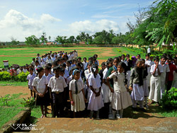 As I walked across the dry grass field towards the school I could see all the children seated together, awaiting our arrival. While the notebooks we would be distributing were cheap, this seemed to be a special event for these children, or at least the school made it out to be that way. However, when the kids saw me it definitely became a special occasion. In this small remote village I don’t think they get many foreign visitors.
