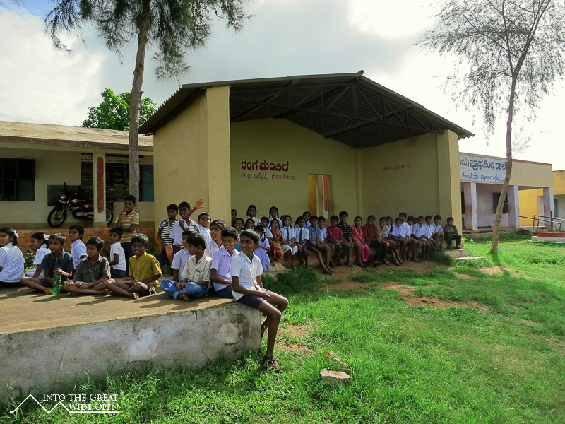 After some introductions with the school administrators the AV equipment was setup and we were seated at a table while the children were told to line up based on their academic year. Following a brief speech in Kannada, the local language, we began distributing notebooks to the children. In fact, we were only distributing notebooks to select children. According to the event organizers, children in the lowest castes are provided notebooks by the Indian government. Therefore, this notebook drive was targeting the children from castes just above that level who did not qualify for the government support. Depending on their year in school the children each received different numbers of notebooks. When they received their notebooks they were very happy to shake my hand.