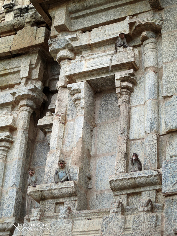 For being such a notable historic site the ruins were not very crowded. Amidst the tourists, both Indian and foreign, there was a sizeable population of locals moving through the site as part of their daily lives. Many of these people were very excited to see foreigners and we were constantly bombarded by introductions and requests for photos. Many were thrilled to see their pictures on the displays of our digital cameras and enthusiastically snapped photos of us with their mobile phones. At times it seemed that there were just as many monkeys as there other tourists. Monkeys moved freely through the temples and ruins, regardless of the opening hours and admission fares. At the end of the day crafty monkeys would try to steal food and other items from anyone that wasn’t paying attention.