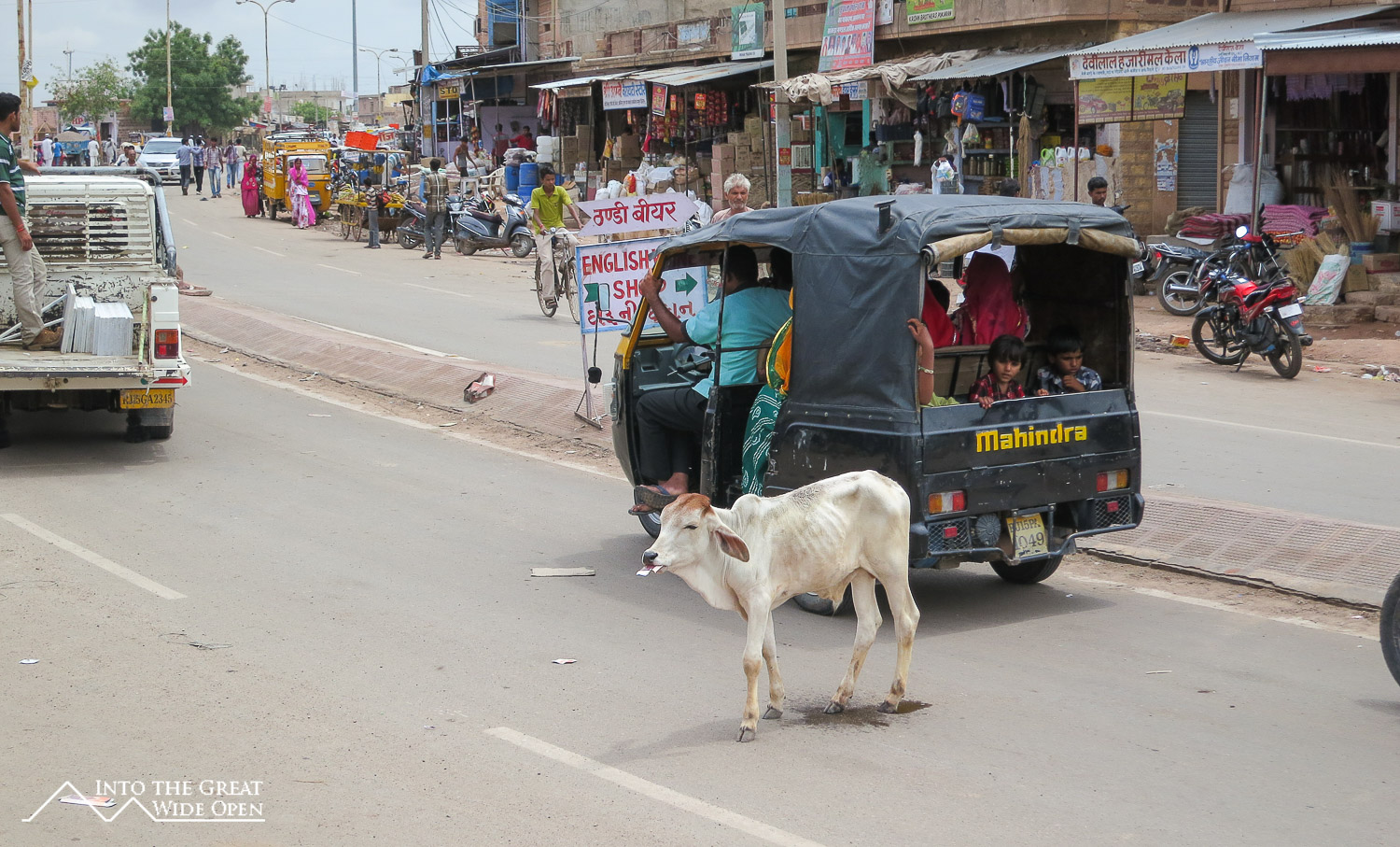 On my trip to Jaisalmer I took a photo which I think sums up India for those that haven’t been there. It is a picture of a cow standing in the middle of the street eating a cardboard ice cream box while peeing. This was on the main road between Jodhpur and Jaisalmer. All the traffic had to slow down and swerve around this cow, which didn’t seem to be bothered by any of the noise and commotion. The people didn’t seem to care either that they were being inconvenienced by this animal. Is this the same India that you read about that will develop into a future global power? Could that be a reality someday? How could a nation of 1.2 billion people be beholden to the fickle whims of an animal that the rest of the world eats for breakfast, lunch, and dinner? Where is the future in that?