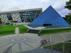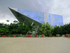 There are gyms, a pool, basketball and volleyball courts, billiard tables, a library, convenience store, and almost everything else that a self-sustaining campus would need. However, on the weekends, without all those thousands of workers scurrying around, it feels a bit like an ultramodern ghost town. The perfectly manicured grounds, still pools, and non-operating fountains make the campus seem like a corporate resort in the dead of the off-season.