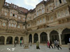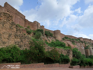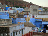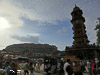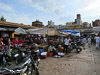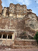Landing in Jodhpur was an interesting experience because the airport is shared with the Indian Air Force. Looking out from the window of the plane I could see several fighter planes and I even got to witness one takeoff on the runway as my plane waited to taxi to the terminal. From the airport it was a fifteen minute ride to the old city, a crowded dusty collection of markets inside the gate of the old city walls. Just inside the gate was an old clock tower at the center of the main square in the midst of a teeming market area. Jodhpur is a well touristed city so there were many hassles here from the numerous sellers. In the distance from the clock tower the towering Meherangarh fortress is visible.