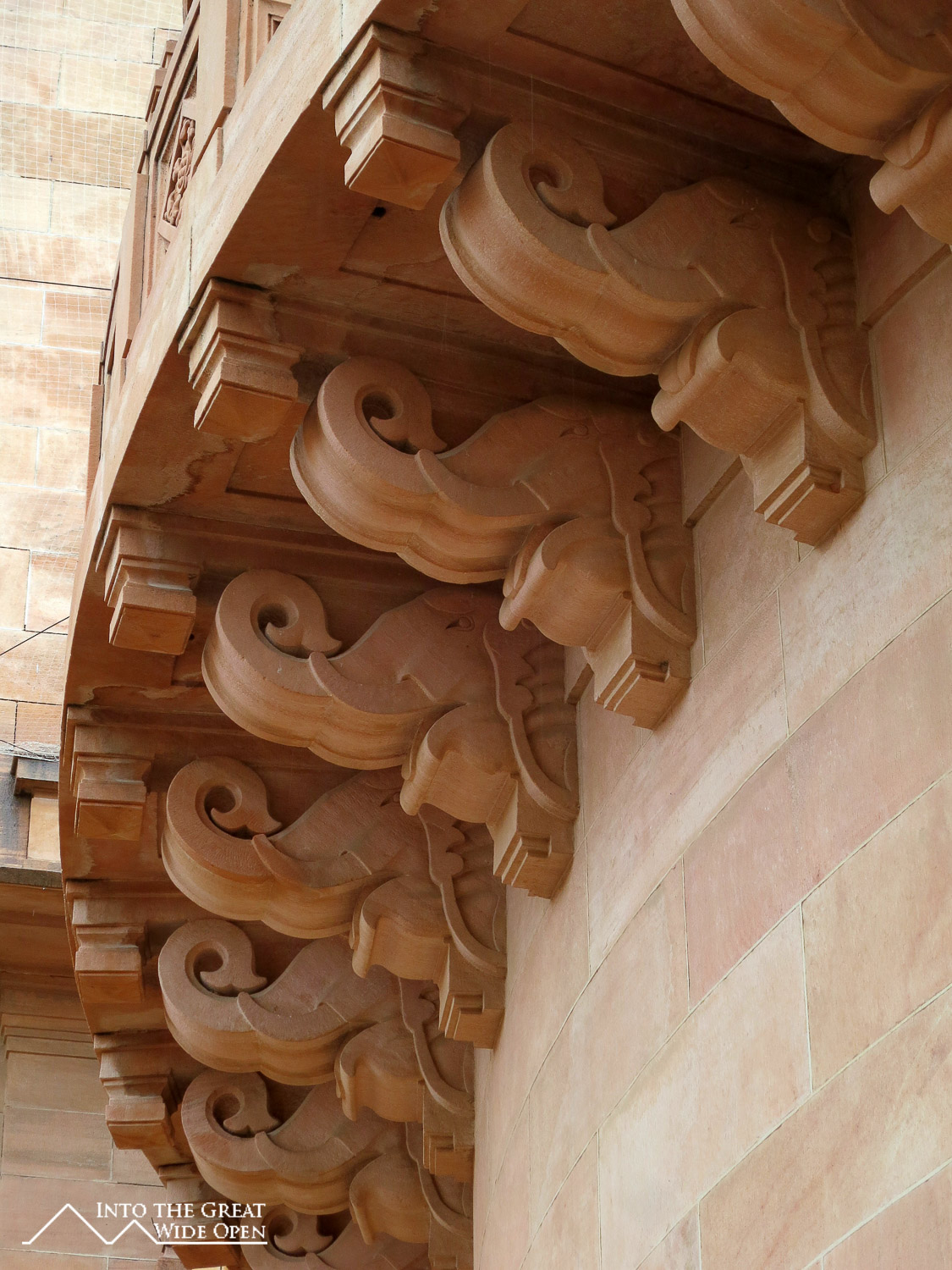 The amazing fortress is perched atop a rock outcrop and was carved directly from it so that the high vertical walls blend smoothly into the base. The fortress itself is a maze of royal rooms surrounding a series of courtyards, all with elaborate carvings, furnishings, and artwork. The views of the old city from the top are also stunning. There are many bright blue colored houses that form a colorful palette that distinguishes them from the surrounding dirt. From the fort you can also see Jaswant Thada by a large pond which features memorials to former Mughal royalty. The modern day Umaid Bhawan palace can also be seen several kilometers across the city, showing that the potential for craftsmanship has not diminished since the glory days of the Meherangarh fort.