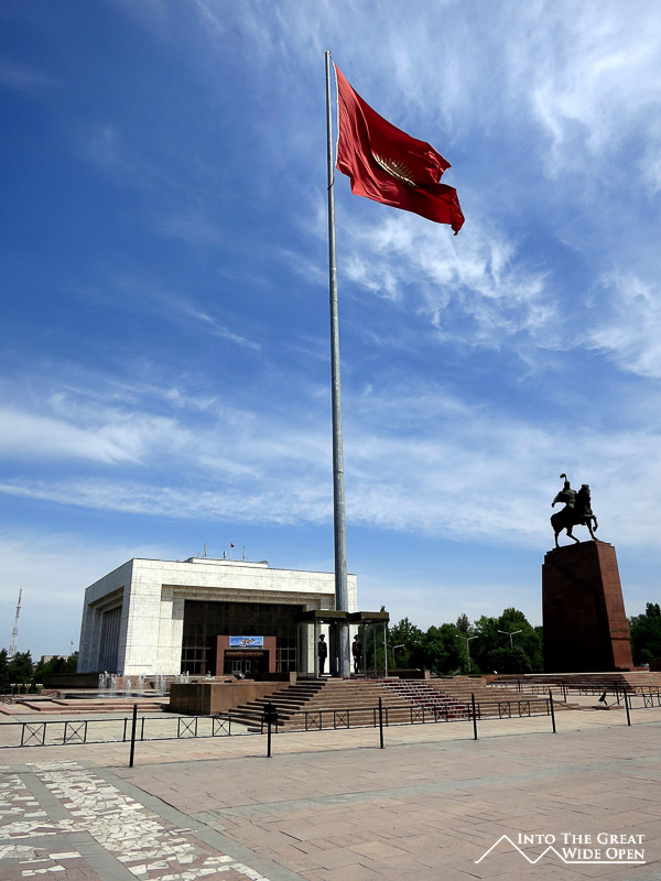 In Bishkek the only reminders of the isolated beauty are the snowcapped mountain peaks visible to the south of the city through the hazy air. Despite that, Bishkek is a rather pleasant place, the main street has several large parks with fountains and statues and with plenty of traffic lights the pace isn’t too chaotic. Alla Too square in the center has an enormous Kyrgyz flag flowing in the breeze with soldiers standing guard at attention during the day. The museum in the square has an archaic collection of old Soviet and Kyrgyz artifacts with no signs in English. The dimly lit museum has artwork painted on the ceilings and bronze statues depicting historic events throughout. Fire safety doesn’t seem to be a priority as the original pre-Cold War fire extinguishers still hang by the exits. Further along the main street is the Kyrgyz White House, at least it is humble and within the scope of what you would expect for a small developing nation.
