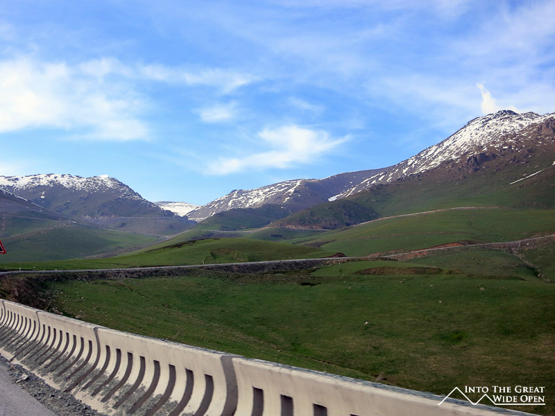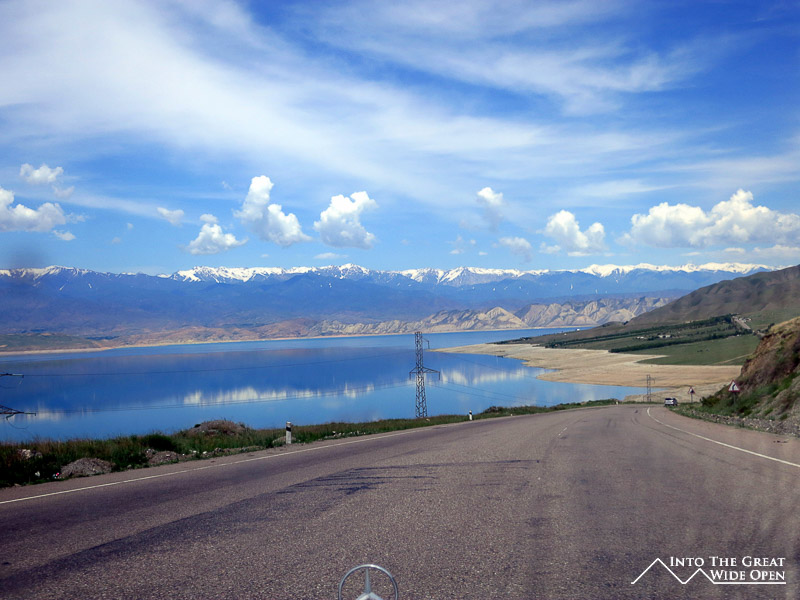 The road from Osh, the second largest city, to Bishkek passes by the third largest city, Jalalabad. In between are miles of empty countryside where animals probably outnumber people. The road winds through green rolling pastures and eventually crests the top of a rise with views of Totogul Reservoir, created after the construction of a dam to harness hydroelectric power. The road wraps all the way around the reservoir before the ascent to the Ala-Bell pass, at this time of the year still covered in snow at 3175 meters elevation. On the other side of the pass a large valley opens up and the old Mercedes with a cracked windshield with 370,000 kilometers that I was riding in flew across the straight roads at 80 miles per hour. Ahead you could see a looming mountain and nowhere for the road to go but up. Looking at the slope of the mountain, sections of the road appeared in a confusing jumble, seemingly everywhere as the array of switchbacks inched slowly upward. Near the top a long tunnel bores through the mountain and another cascade of switchbacks brings you back down for the final stretch to Bishkek. This section is one of the more spectacular roads I have been on; from the top there are sweeping views of the valley floor and the steep curvy road.