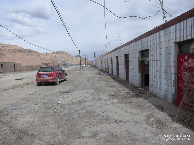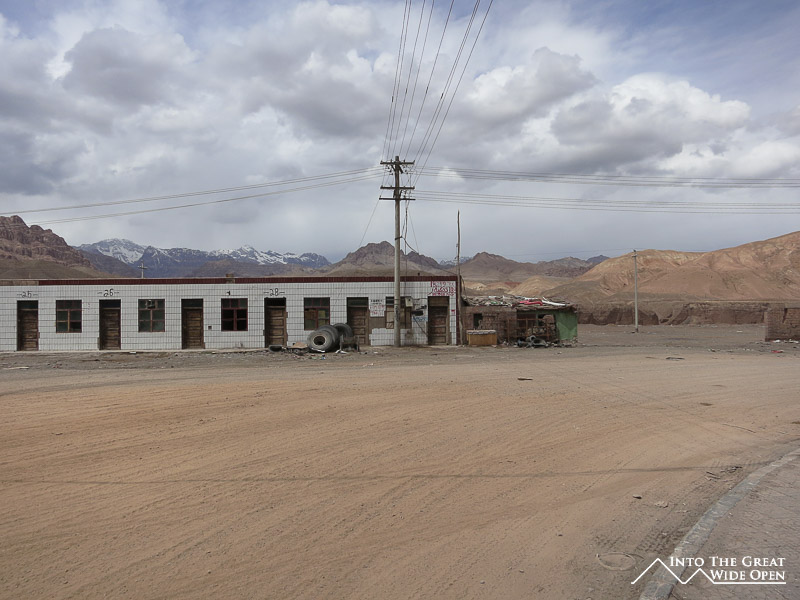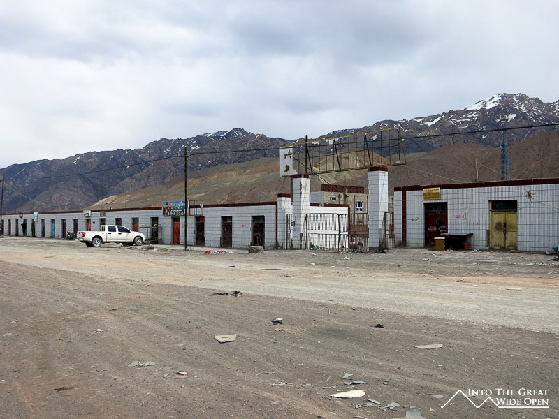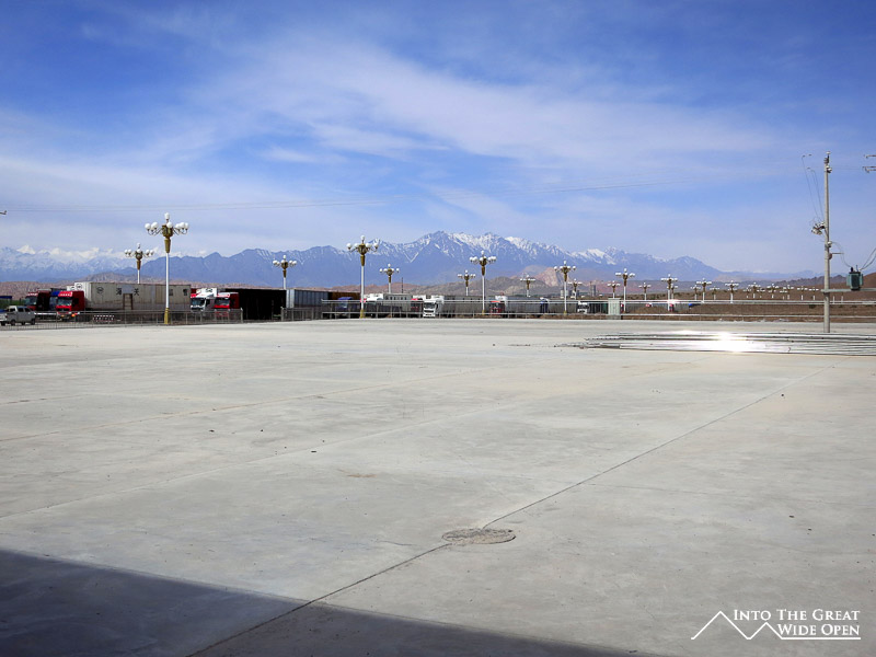 Somewhere in between Ulugchat and the actual border we passed a security checkpoint where our passports were checked and the numbers recorded in paper logbooks, no Internet failures here. Finally after about 3 and a half hours on this road we reached the Chinese side of the border. Since Chinese immigration has moved to a new location this border town has all but disintegrated into a vision of post-apocalyptic civilization. The row of shops and restaurants that once lined the main street were all abandoned, trash is strewn everywhere, and there was a lone cow wandering around untethered. Due to our timing we managed to arrive about 45 minutes before the office was scheduled to re-open from the lunch break. We managed to find one open store, which sold some drinks and packaged foods along with other relics that were covered in dust. Almost right on schedule ten Chinese soldiers marched out of one building right into the next one to open the final Chinese checkpoint before the Kyrgyz border.
