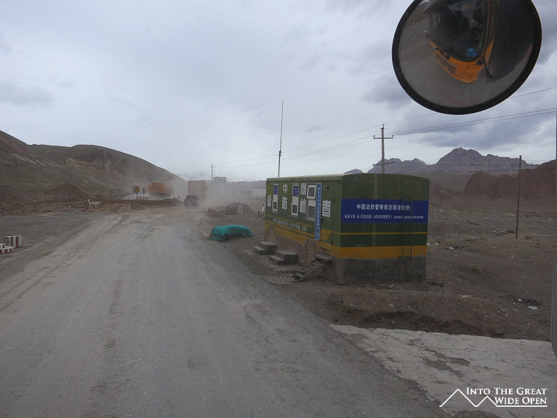 At the immigration office we had to wait about 45 minutes for the Internet connection to be restored so they could process our passports. Fortunately, while we waited, we met a Scottish guy who had paid for a minivan to take him to the Kyrgyz border and he just happened to have 4 empty seats in the van. After some negotiating with the driver and guide they let us ride with them for 100 RMB each. Once the Internet was restored we got our passports stamped and were on our way.