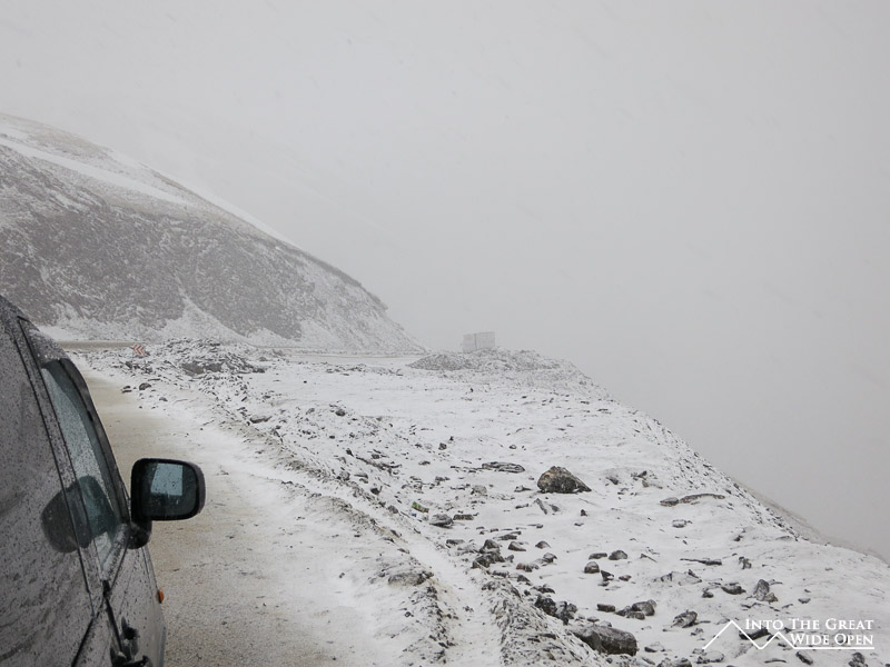 The rain continued to fall as we switched from one car to a bigger car and picked up more passengers. It was the four of us, the driver, his helper, a Kyrgyz soldier, and two other locals. From the border the road climbed steadily upward and the weather steadily deteriorated. The cold rain turned to sleet that then turned to snow as our elevation increased. On top of the precipitation it became increasingly foggy on this winding mountain road. If we could have seen anything out of the windows the scenery would have been great. But with nothing to see out of the windows we had to watch Russian music performances from some 1990s Russian MTV show on the LCD TV screens in the seatbacks. As we neared the top of the final mountain pass Vanilla Ice came on stage and we got to see him perform “Ice, Ice, Baby” in front of a crowd of screaming Russians; something completely random that made all of us smile.