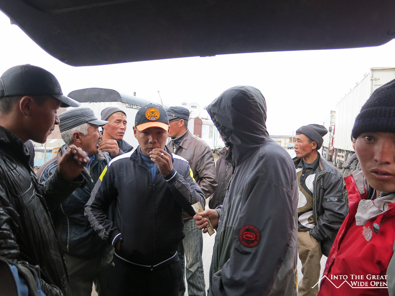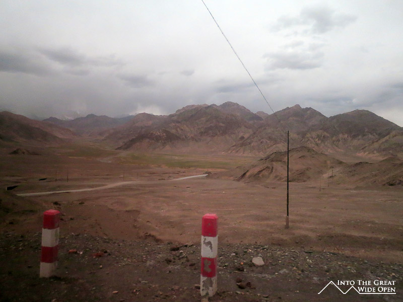 At this point it was the four of us plus the Scottish guy, since his driver and guide had picked up their passenger and departed back to Kashgar. We had our passport numbers recorded one more time, just to make sure you wouldn’t elope into this desolate wasteland and cause some sort of mischief. Past this checkpoint was 7 kilometers of a virtual no man’s land; in this zone you can’t go back to China and you aren’t officially in Kyrgyzstan yet. Due to some Chinese technicality you are not allowed to be unaccompanied here so each of us were put into whatever vehicles were also waiting to cross the border. We had to ride in these trucks until we reached the Kyrgyz checkpoint at the other end. Here, our passports were checked and numbers recorded, and the guard radioed ahead that there were tourists coming through to the actual immigration office. A few minutes later we reached the office, disembarked from the trucks, and got our passports promptly stamped.